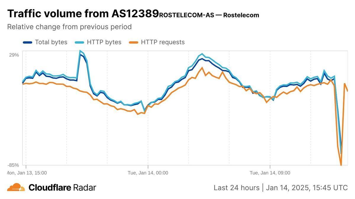 【俄罗斯多家电信运营商的流量出现了大面积下滑】